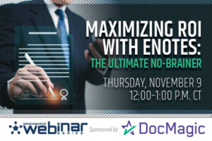 On Thursday, November 9, the Five Star Institute, in partnership with DocMagic, presents the latest in its Webinar Series, “Maximizing ROI With eNotes: The Ultimate No-Brainer,” at Noon Central.