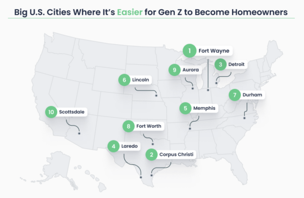 With the number of Gen Zers nearing a whopping 70 million—about 21% of the U.S. population—a new study from Point2 revealed which cities have the best chance of achieving homeownership. Born between 1997 and 2012, some members of Gen Z are ready to purchase a home. But where? In which city?