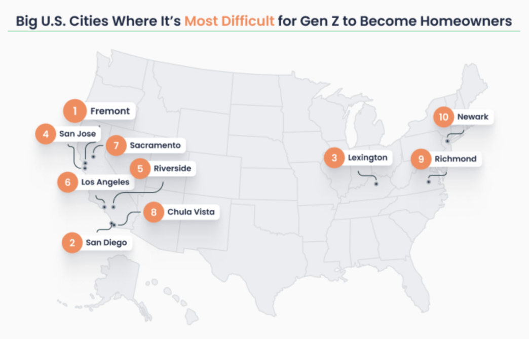 Gen Z Homeownership is "Close to Impossible" in Big California Cities and Lexington, KY.