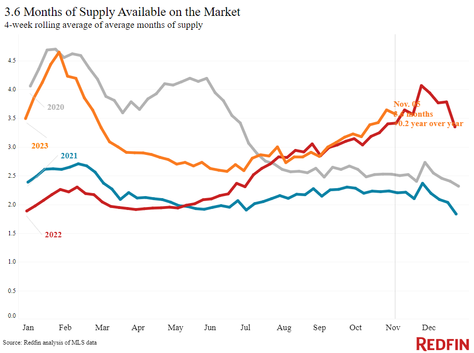 While overall nationwide housing inventory remains low, there has been an unseasonal uptick in the total number of homes for sale, which is at its highest level since the start of the year. New listings rose 1.5% from a year ago during the four weeks ending November 5, just the second increase since July 2022.