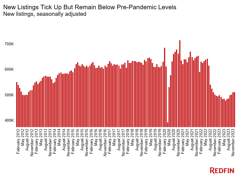 New listings rose 0.1% month-over-month to the highest seasonally adjusted level since September 2022, and were up 2.7% year-over-year—the largest increase since July 2021.
