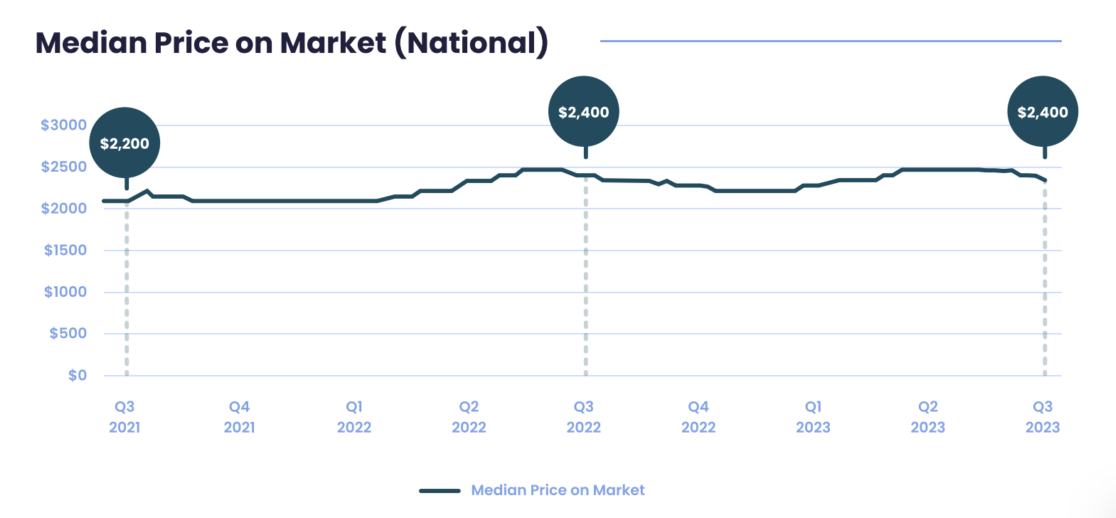 Much like the preceding quarter, Q3 2023 saw only a marginal year-over-year increase in median SFR prices. This trend can be attributed to a surplus of available-for-rent inventory, as evidenced by a notable 31.5% surge compared to the previous year. Additionally, the average days on market expanded by 28.4% year-over-year, indicating that rental properties are staying listed for extended durations compared to the same period last year.